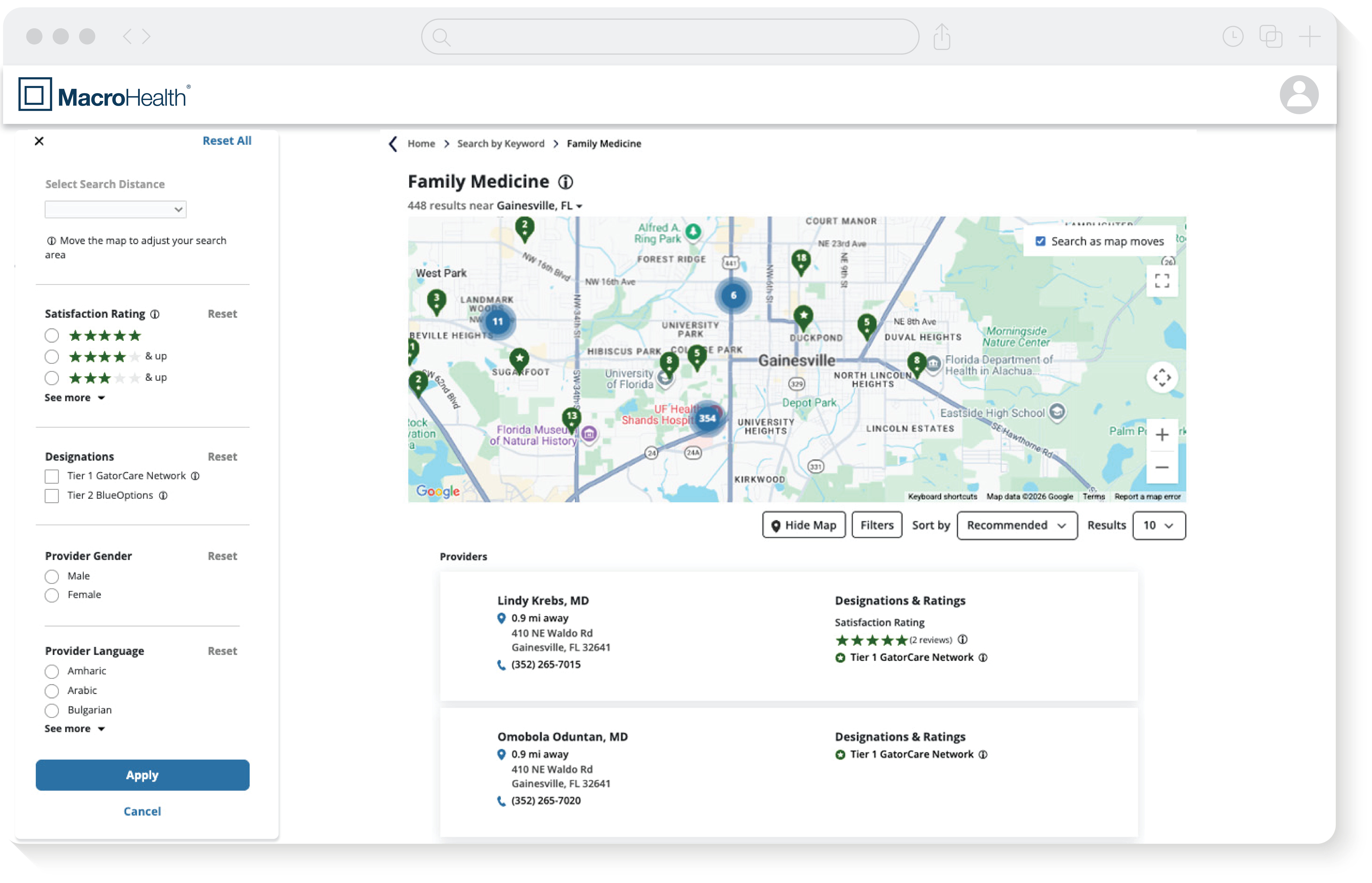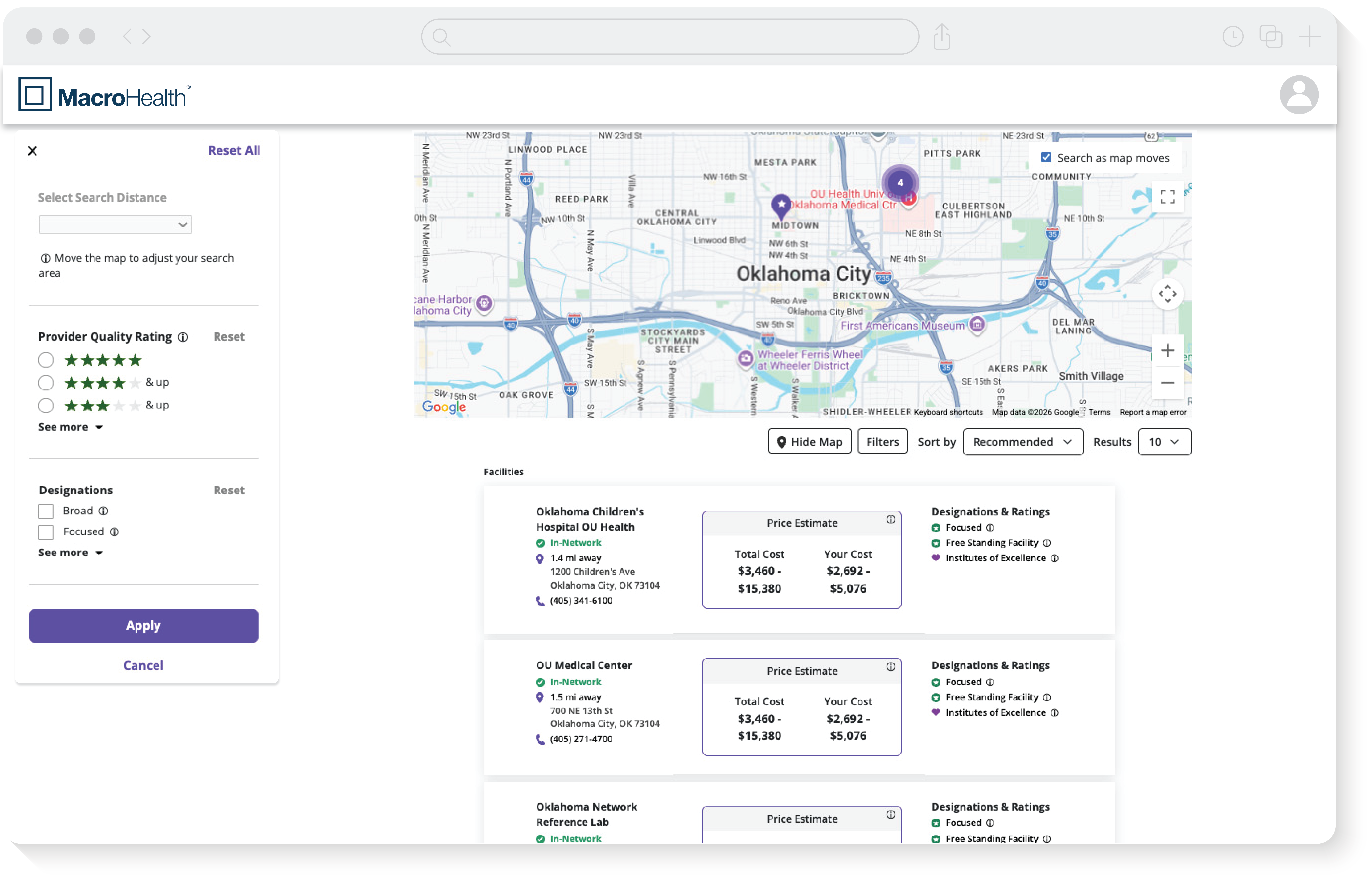 Payers can offer consumers a unified, intuitive provider search experience that reflects your plan design. Easily configure by quality, tier, and specialty to support steerage and showcase preferred providers or sites of care.